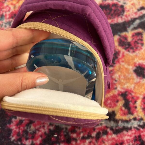 The crystal bags are designed with love, great care and custom-made by hand in a small shop on lake Constance. After the completion of each individual bag, it is energized with the love and peace energy of mother Mary. For the manufacturer, there is no better gift than if you're looking forward to receiving and using the crystal bags, and if you can feel what lightful feast the angels and her were having in the making of the pouch.