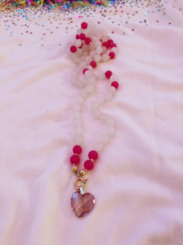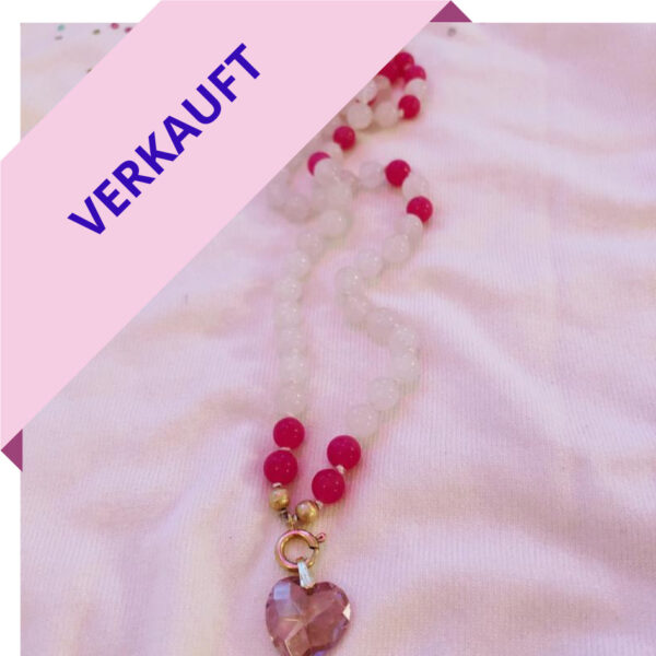 Diese mutige Mala besteht aus weißer und pinker Jade.